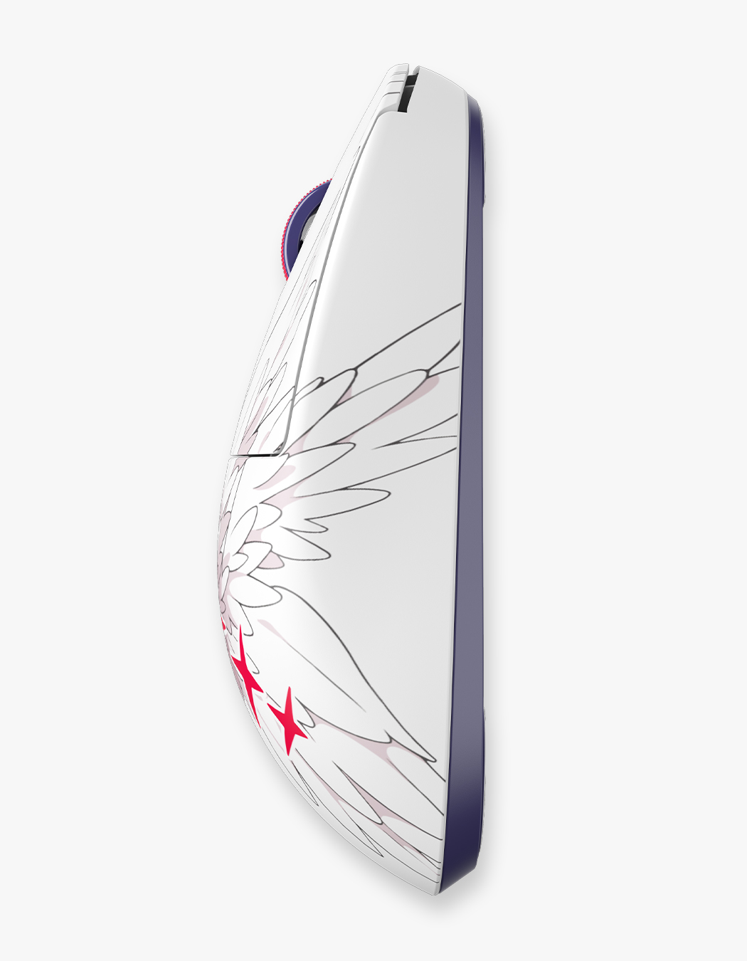 DJMAXのキャラクター ダインのシンボルである6枚の翼と十字楔のグラフィックがデザインされたマウスです。